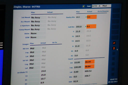 Monday, June 6, I went in for my “fitting” for the form they make for the radiation table. They put me in this machine (which is a CAT/MRI type machine) and took some pictures.
